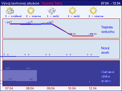 5-dňový vývoj lavínovej a snehovej situácie v jednotlivých pohoriachNONSTOP INFO o lavinovej situaci: 044 / 5591 695 Počasie | Podmienky na horách | Lavínová situácia | Výstrahy | Predpoveď pre hory Stredisko lavínovej prevencie Horskej záchrannej služby v Jasnej Akékoľvek linkovanie údajov len so súhlasom zdroja. (c) IS panoramix 2025, Horská